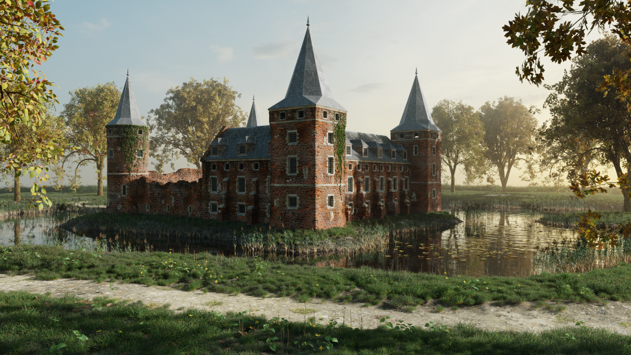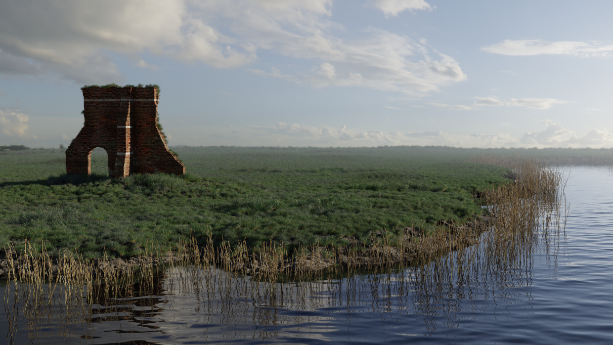 Created from scratch (including all nature assets like grass, small plants, trees) by myself in Blender 2.82, rendered in Cycles.